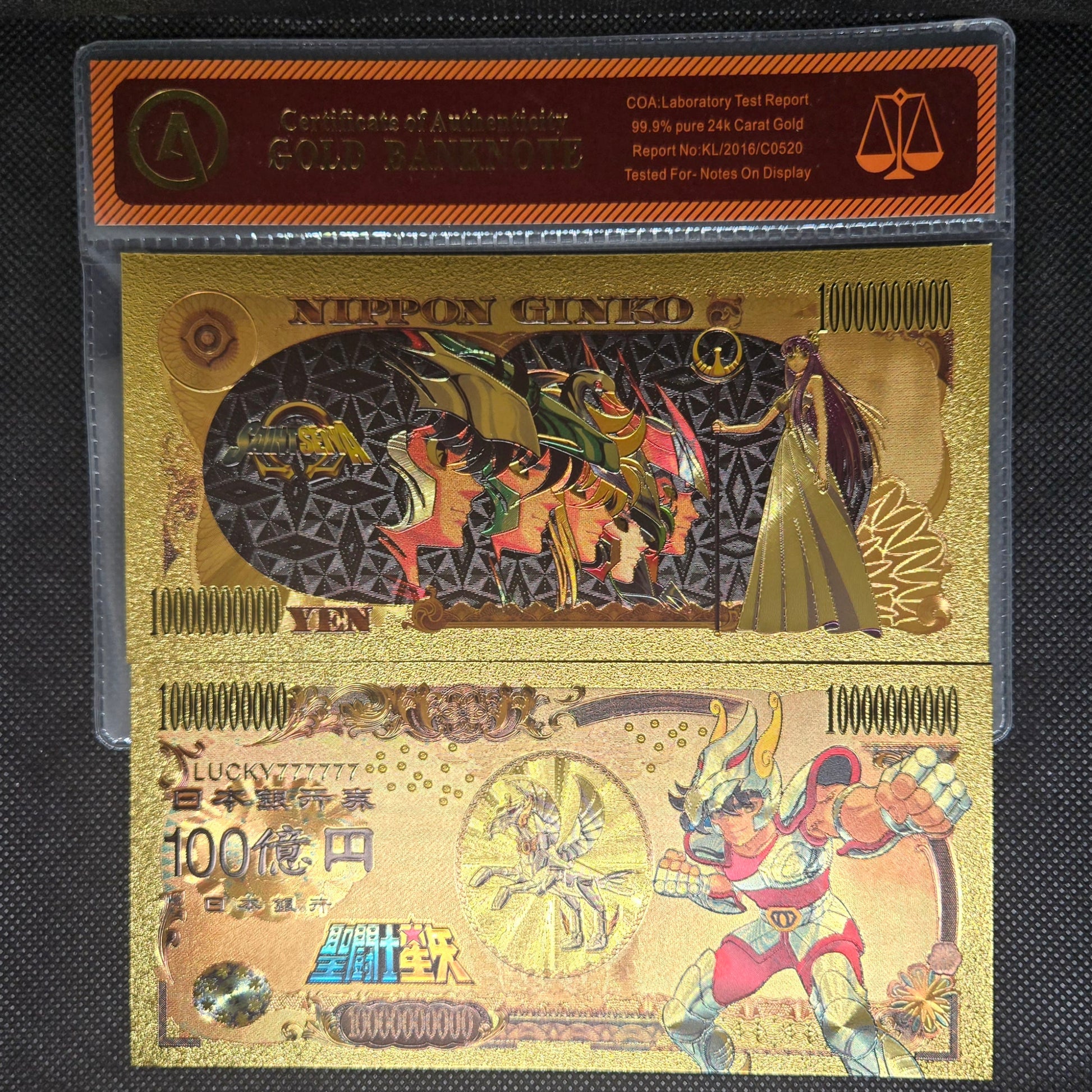 ⭐️ Saint Seiya gold bills is now available online! Portrays your favorite character on the front of the bill and a group pic of the anime on the back of the bill. Each bill is gold-plated and comes with a Certificate of Authenticity sleeve. You can also purchase an acrylic display case from us to put the bill in and to display it nicely!🚨 Details⭐️ .999999 Gold-Plated 24K Bill (Tested For-Notes On Display)⭐️ Comes with Certificate of Authenticity Sleeve.⭐️ Each bill has a front and back as displayed on the pic.⭐️ With an additional price, you can add a magnetic display case to display the bill nicely.⭐️ Local business located in Honolulu, Hawaii.⭐️ Free Shipping over $50 anywhere in the United States!⭐️ This note is not legal tender and for collectible purposes only.🥰 Makes a great gift! 🤙